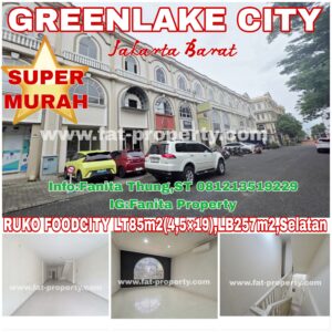 Dijual RUKO FOOD CITY, Green Lake City, Cipondoh, Perbatasan JakBar & Tangerang. SUPER MURAH! LT 85m2 (4.5×19) LB 257m2 3lantai 11.000 watt Sertifikat HGB Hadap Selatan Parkir luas Lokasi ramai dan strategis dikelilingi perumahan. Bisa dijangkau dari jalan biasa atau jalan tol exit tol Karang Tengah. Hanya 7km(17 menit) ke Puri Indah Mal, Hanya 20km(33 … [Read more…]