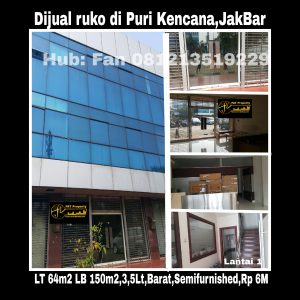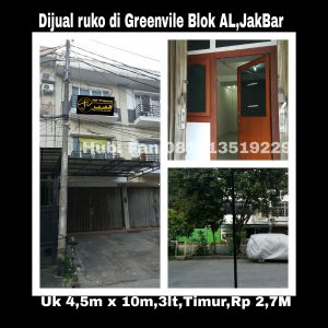 Dijual Ruko di Taman Meruya Utara,Dekat Pasar Meruya,Jakarta Barat. Uk 5 x 13.5 m , 3 LT. Hadap Selatan. Listrik 2200 W, Pompa sumur, 2 AC. tempat parkir luas, 2 Ruang kamar, 2 Kmr mandi, CCTV. Hadap perumahan, cocok utk kantor. SHGB. Harga Rp 3.2 M Hubungi: Fan 081213519229 Email: fan@fat-property.com Instagram: apartmentbagusproperty