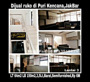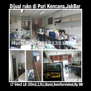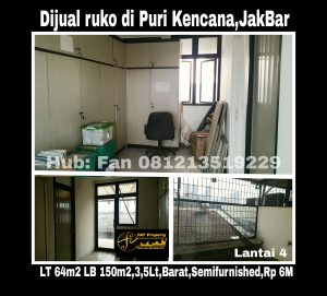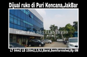 Dijual rukan kantor di Puri Kencana Blok K,Jakarta Barat.Hadap Barat.