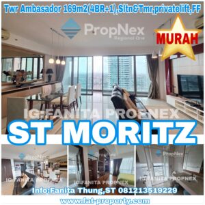 Dijual cepat Apartment ST MORITZ Tower Ambasador, paling strategis di tengah2 Lippomal Puri. Murah! Mewah! Tipe badan ukuran 134m2 dgn privatelift. Berada di lantai sedang Menghadap Selatan(Tol Kbn Jeruk & pool). Terdiri dari: -3 kamar tidur -3 kamar mandi -livingroom dgn balkon -diningroom -dapur bersih -dapur kotor -kamar pembantu -kamar mandi pembantu -gudang -foyer untuk … [Read more…]